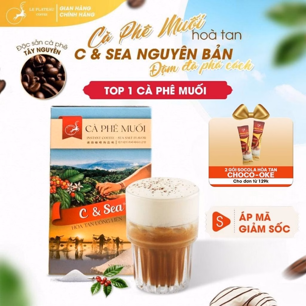 - Mua hàng: https://marketplace.tripmap.vn/product/ca-phe-muoi-hue-thom-ngon-tien-loi-csea-le-plateau-1-hop-20-goi-khuyen-mai-60k