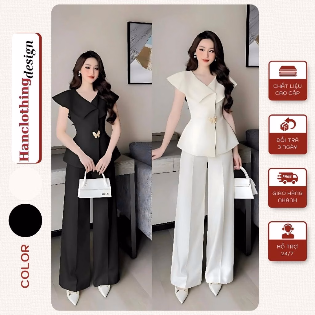 🔥 Sét Công Sở Áo Kiểu Cổ Cánh Tiên Mix Quần Ống Đứng Sang Trọng ST049 _Matthia Design đang giảm giá!